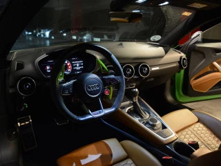 Espectacular unidad de Audi TT RS del 2019. El coche está cuidado al milímetro, siempre durmiendo en garaje privado y con todos los mantenimientos rigurosamente al día. El coche está impecable tanto de chapa y pintura (color verde Kyalami) como de interiores con Audi Virtual Cockpit. Respeto absoluto de los tiempos de calentamiento y enfriamiento del turbo en cada uso. Para los que buscan un rendimiento superior y una experiencia de conducción inigualable.