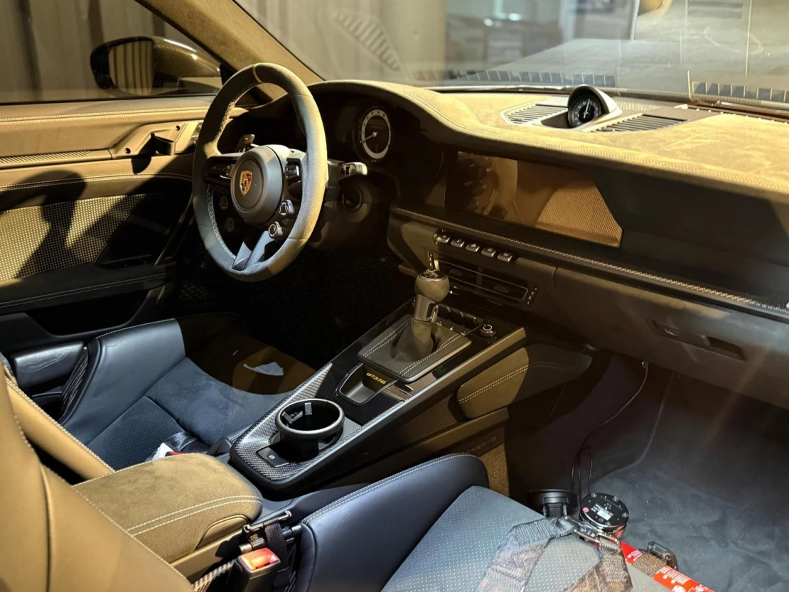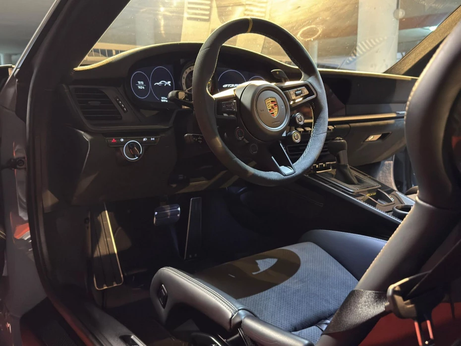 Paquete Weissach: Incluye: capó, techo y alerón en carbono visto, jaula antivuelco en carbono/titanio, levas magnéticas, barras estabilizadoras de carbono. - Frenos Cerámicos Porsche (PCCB): Pinzas de freno en negro brillante. - Llantas: Llantas de Aluminio forjado. - Sistema de Elevación del Eje Delantero (Lift System): Indispensable para el uso en calle, rampas y garajes. - Asientos: Asientos envolventes integrales (Full Bucket Seats) en fibra de carbono. - Paquete Clubsport: Extintor y preparación para cortacorrientes. - Otros extras: Sistema de sonido BOSE Surround, paquete de iluminación ambiental, ParkAssist con cámara de marcha atrás.